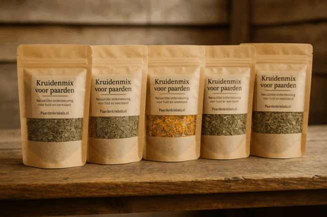 De Paardenkriebels mix ze is ontwikkeld als natuurlijke verzorgingsset voor paarden met een gevoelige huid. Met de Paardenkriebels mix ze geef je je paard de verzorging die het verdient – eenvoudig, natuurlijk en effectief.