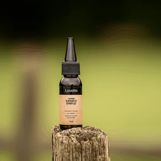 De actieve ingrediënten uit onze 60 ml: Neem olie, amandel olie, essentiele olien van tea tree, oregano, rosemarijn, patchouli en palmarosa.